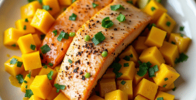 Receta de Salmón Tropical con Mango y Aguacate, inspirada en Honiara, Las Islas Salomón