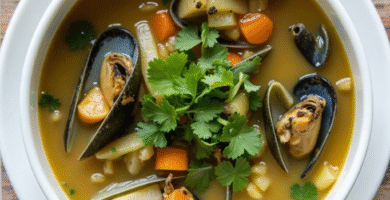 Receta de «Green Mussel Soup» Marlborough Sounds, Nueva Zelanda