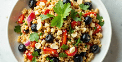 Receta de Ensalada de Quinoa con Aceite de Oliva Verde y Almendras, inspirada en los Aromas del Mediterráneo