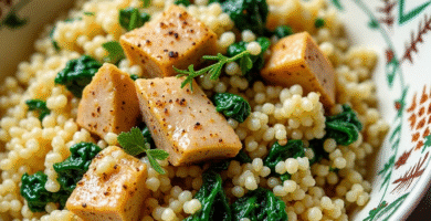 Receta de Cuscús al Ajillo con Espinacas y Atún de Constantina, Argelia