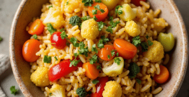 Receta de Majboos con Arroz Caramelizado y Vegetales
