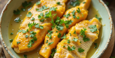 Receta de Pescado a la Vapor con Jugo de Mango y Hierbas de Palaos