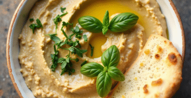 Receta de Hummus con Pita y Albahaca Fresca de Jerusalén