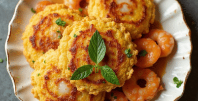 Receta de Johnny Cakes Ingleses con Tostones y Mariscos del Caribe