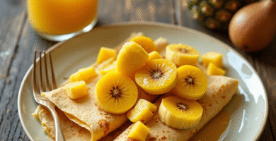Receta de Crepes de Plátano Maduro con Jugo de Frutas Tropicales