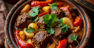 Receta de Tajine de Carne con Pimientos y Cebolla del Estilo Alhucemas, Marruecos