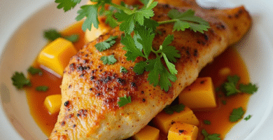 Receta de Barramundi al Horno con Salsa Pimienta de Jamaica y Mango, de Jabiru, Australia