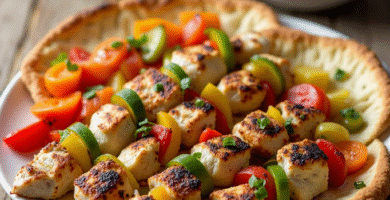 Receta de Souvlaki Chipriota con Pollo y Verduras