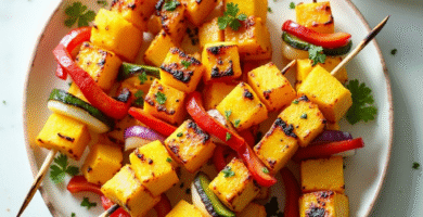 Receta de Skewers de Halloumi con Salsa de Mango y Hierbas