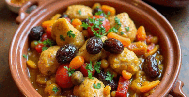 Receta de Tagine de Pollo con Dátiles y Pasas para Jebel Ali, Emiratos Árabes Unidos