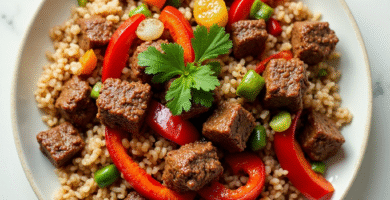 Receta de Salteado de Carne de Colorado con Pimientos y Arroz Integral