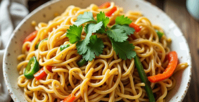 Receta de Kolo Mee con Pollo y Vegetales