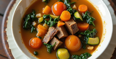 Receta de Sopa de Nyama Choma y Espinacas para Mbeya, Tanzania