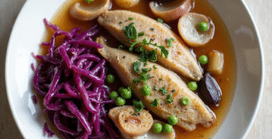 Receta de Stewed Herring with Pickled Red Cabbage and Potatoes from Midtjylland, Denmark