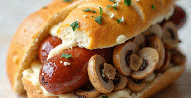 Receta de Sándwich de Łódzkie Kiełbaski con Champiñones y Crema