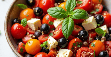 Receta de Ensalada de Tomate y Queso Mahón con Toques Mediterráneos para Cala’ Formentor, Menorca