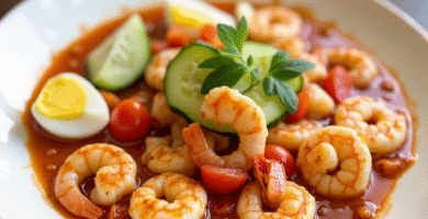 Receta de Gambas al Ajillo con Salmorejo Andaluz
