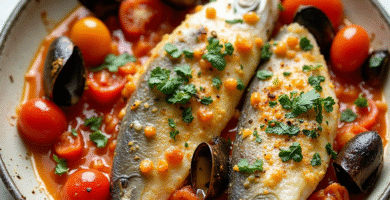 Receta de Pescado al Horno con Salsa de Mariscos de Cala Sant Vicenç, España