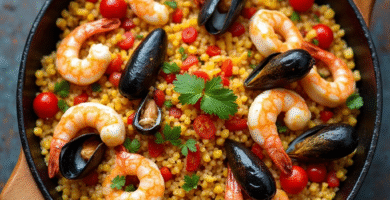 Receta de Paella de Quesadas Pasiegas y Mariscos