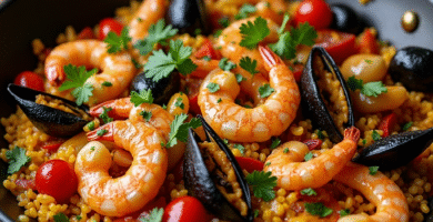 Receta de Paella de Mariscos con Vino de la Región de La Rioja para Garraf