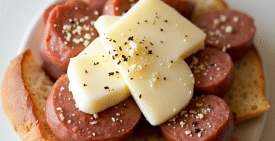 Receta de Queso Artesanal de Besalú con Pan de Ajo y Salchichas