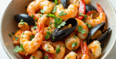 Receta de Salteado de Mariscos con Vinagre de Txakoli de Amorabieta-Etxano