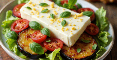 Receta de Queso de Cabra a la Manchego con Berenjena y Tomates Cherry