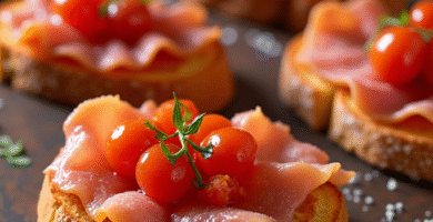 Receta de Jamón Ibérico de Bellota en Crostini con Mermelada de Tomate
