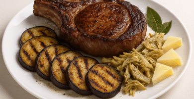 Receta de Chuletón de Ávila con Alcachofas y Berenjenas