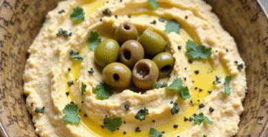 Receta de Hummus con Za’atar y Aceitunas de Jericó