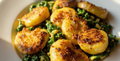 Receta de Platanos a la Parrilla con Espinacas y Queso Frito (Camembert) de Kribi, Camerún