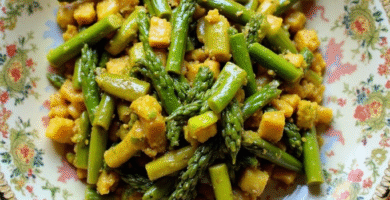 Receta de Sauté de Espárragos con Ema Datshi de Samdrup Jongkhar, Bután