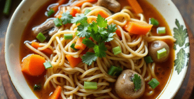 Receta de Menzi Noodles con Sopa de Pollo y Verduras