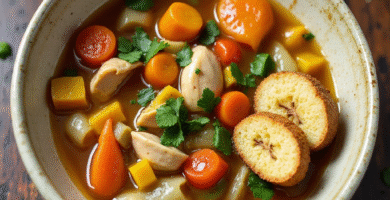 Receta de Sopa de Pollo y Verduras con Tostones de Plátano: Inspirada en Guangzhou, China