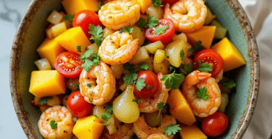 Receta de Fruta Tropical Mojada con Moamba de Camarón