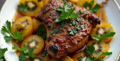 Receta de Cordero al Horno con Kiwi y Perejil, típica de Queenstown, Nueva Zelanda