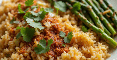 Receta de Nasi Lemak con Midin (Espárragos Salteados) al estilo de Malasia