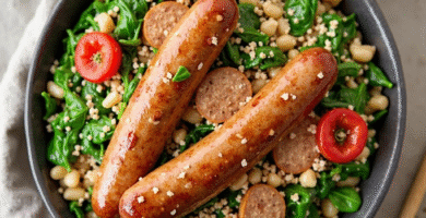 Receta de Salchichas de Pleven con Espinacas y Quinoa
