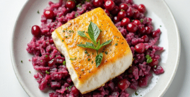Receta de Bacalao Noruego con Remolacha y Ensalada de Arandanos