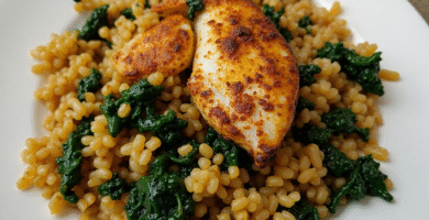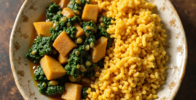 Receta de Attiéké y Sancocho de Pollo con Espinacas