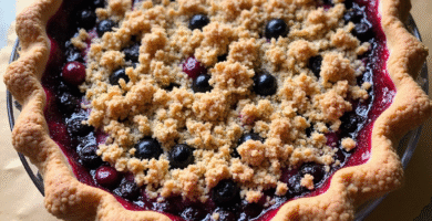 Receta de Tarta de Huckleberry y Crumble de Frutas Locales