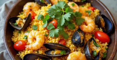 Receta de Paella de Mariscos con Infusión de Vinos de Long Island