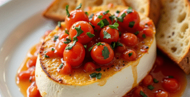 Receta de Queso de Cabra al Horno con Salsa de Tomate y Hierbas