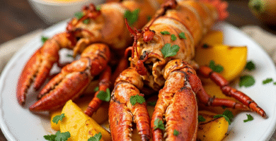 Receta de Langosta a la Parrilla con Salsa de Mango Caribeña