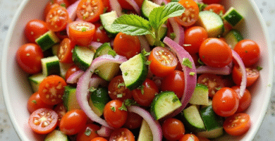 Receta de Salata B’zayidah (Salada de Verduras) con Warak Enab para Madinat Al-Ash Shamal, Qatar