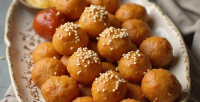 Receta de Kurabiyya con Sésamo Frito y Salsa de Tomates para Tabriz, Irán