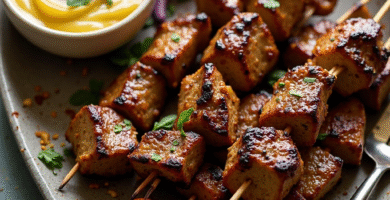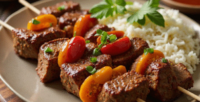 Receta Australiana: Cordero y Ternera Skewers al Horno con Salsa de Mostaza