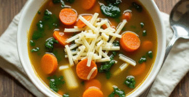 Receta de Sopa de Verduras con Vino Willamette Valley y Queso Asiago