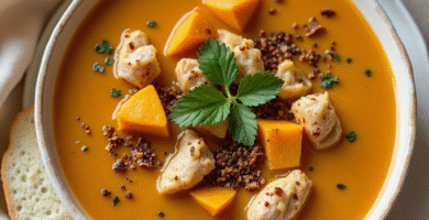 Receta de Sopa de Calabaza y Pollo de Granja al Estilo de Palm Springs, California
