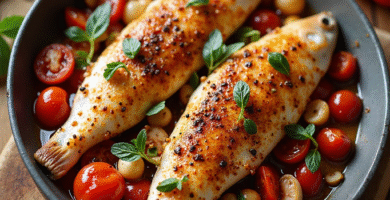 Receta de Trucha Montaña al Ajillo y Champiñones de Aosta, Italia